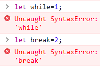 let같은 키워드는 하위 호환성을 위해 완전히 예약어로 분리할 수는 없어서, 식별자로 사용할 수 있는 경우와 없는 경우를 나누는 복잡한 규칙이 존재한다.그냥 웬만하면 from, set, target 등을 제외하고는 예약어를 식별자로 사용하지 말자.