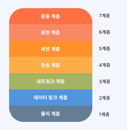데이터를 전송하며 내부에서 많은 일들이 일어나는데, 이런 일들은 7개 계층(Layer)으로 나뉜다.