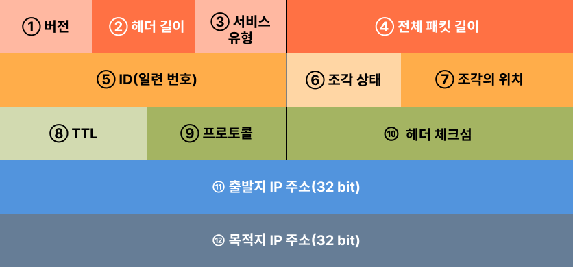 ⑫ 목적지 IP 주소(Destination IP address) (32 bit)