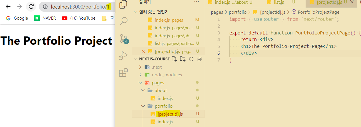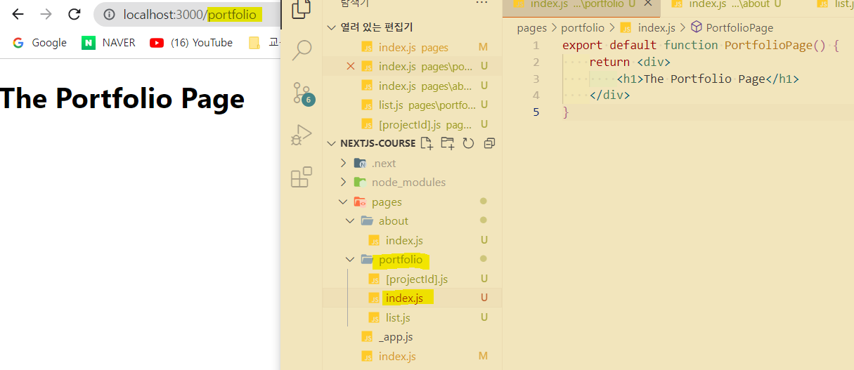 pages안의 폴더와 파일 기준으로 라우팅이 된다. portfolio 폴더 안의 index.js가 /portfolio의 대표 페이지가 된다.