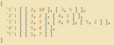 const fs = require('fs'); const input = fs.readFileSync('input.txt').toString().trim().split('\n'); const [V, E] = input[0].trim().split(' ').map(Number); const adjList = {}; for (let i = 1; i <= V; i++) { adjList[i] = []; } for (let j = 1; j <= E; j++) { const [from, to, price] = input[j].trim().split(' ').map(Number); adjList[from].push([to, price]); }